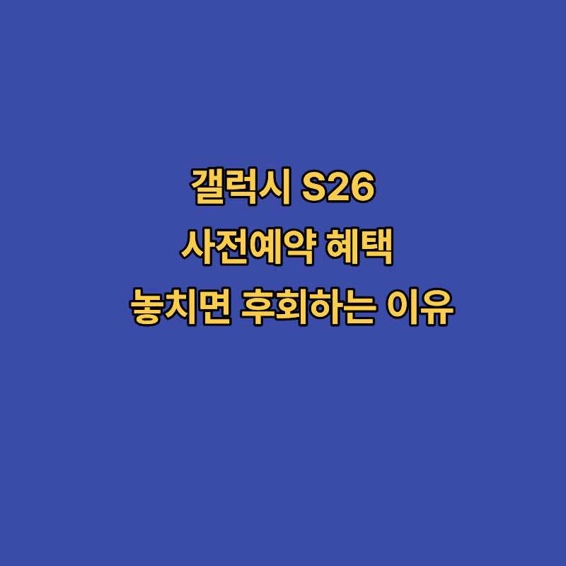 갤럭시 S26 사전예약 시작! 출시 전 최대 30만원 상당의 혜택을 받을 수 있지만, 사전예약 기간을 놓치면 정.가로 구.매해야 합니다. 지금 바로 예약 방법과 숨은 혜택까지 완벽하게 정리해드립니다.