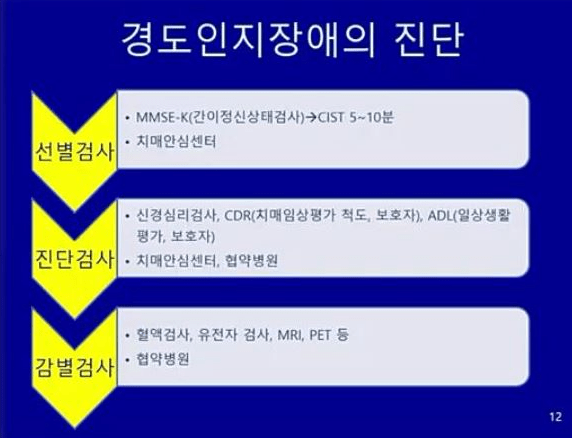 - 경도 인지 장애: 경미한 수준의 인지 기능 저하