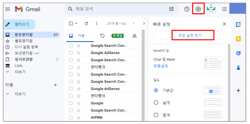 지메일에서 발송취소 시간을 설정하는 방법은 아래와 같습니다.