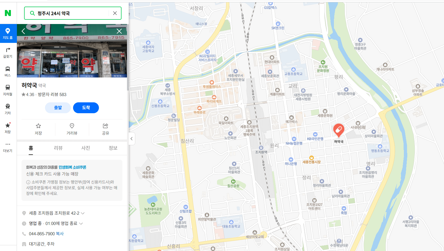 🕐 일부 약국은 심야 시간만 연장 영업하므로 지도 내 ‘영업 중’ 표시를 꼭 확인하세요.