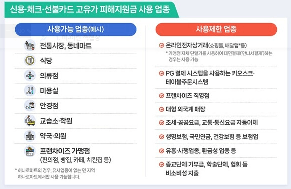 A. 연 매출 30억 이하 소상공인 매장, 주유소 등에서 사용 가능하며 대형마트·온라인몰에서는 제한됩니다.
