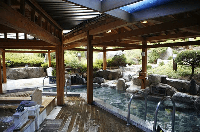 - 30도 미만인 일부 온천과 달리 천연온천수가 50도 안팎으로 가열하지 않은 자연 그대로의 강 알칼리 온천수이다.
